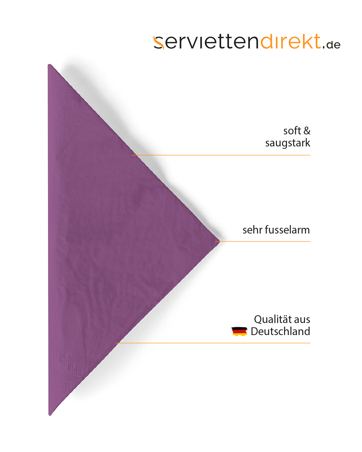 Die Produkte der Farbe AUBERGINE aus unserem unifarbigen Sortiment sind in einem Farbton gehalten, der edle Raffinesse vermittelt. Mit unseren Tischprodukten in AUBERGINE lassen sich Tischgestaltungen realisieren, die sich auch gut mit weiteren Designs aus unserem Sortiment kombinieren lassen. Lassen Sie sich von den Kombinationsmöglichkeiten inspirieren! Unsere Servietten aus softem Tissue punkten durch ihre hochwertige Qualität und die flexiblen Einsatzmöglichkeiten gleichermassen. Ob zum FrühStück, dem Nachmittags-Kaffee oder im Barbereich , unsere dreilagigen Tissue Servietten sind Allrounder für viele Gelegenheiten!