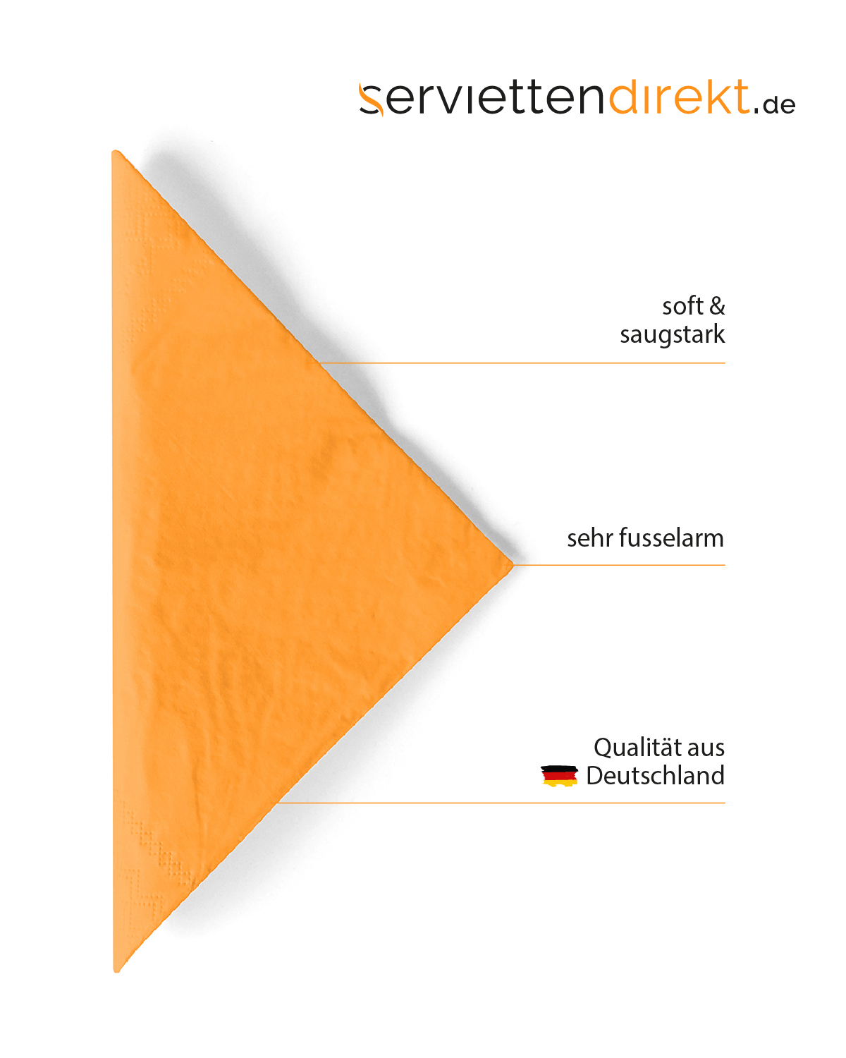 Der Farbton CURRY bringt sofort exotisches Flair in Ihre Tischdekoration. CURRY lässt sich auch mit weiteren Farben unseres unifarbigen Sortiments kombinieren, oder durch eines unserer Designs ergänzen , für immer neue Designideen! Unsere Servietten aus hochwertigem Tissue sind moderne Allrounder für nahezu jede Service-Situation. Das aufwendig hergestellte, dreilagige Material ist saugstark und reissfest, ideal für den Barbetrieb, FrühStücksservice oder das Cafe.