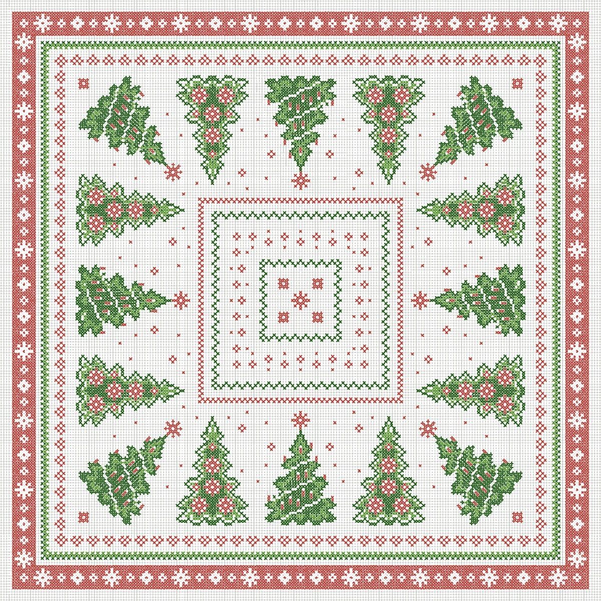 Wie ein Stickbild, über das sich detailreich weihnachtliche Motive ziehen, wirkt das Design Gina. Tannenbaum und winterliche Bordüre in klassischer Rot-Grün Kombination sorgen für festliche Stimmung an Ihrer Tafel. Kombinieren Sie Gina mit weiteren Produkten unseres unifarbigen Sortiments, um einen völlig neuen Look zu erreichen. Auch dieses Design ist in bewährter Linclass-Airlaid Qualität erhältlich. Verleihen Sie Ihrem Tisch einen individuellen Look mit Mitteldecken aus Linclass Airlaid im Design Gina. Mitteldecken von Mank stehen für höchste Ansprüche an Qualität und Design und sind die Basis einer gelungenen Tischdekoration.