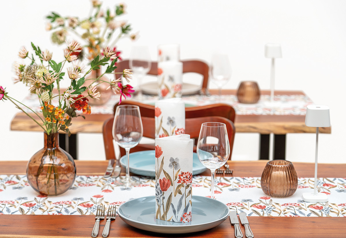 Wenn die Tage kürzer werden und Gemütlichkeit im Mittelpunkt steht, darf eine stilvolle Tischdekoration nicht fehlen. Die Airlaid Serviette „Selma“ von Mank ist die perfekte Wahl für herbstliche Arrangements mit natürlichem Flair. Ihr filigranes Design und die harmonische Farbgebung machen sie zu einem Blickfang auf jeder Tafel – ob im privaten Rahmen oder in der gehobenen Gastronomie.