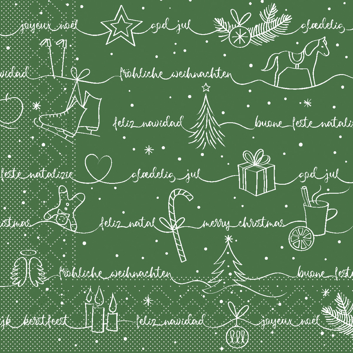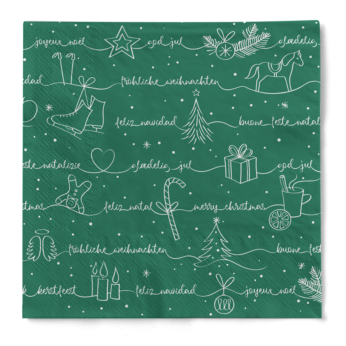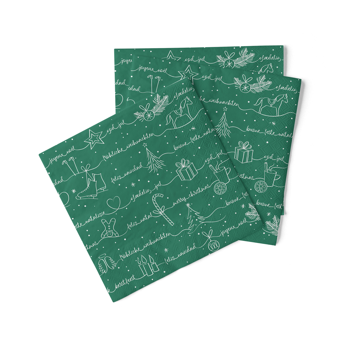 Mit 100 Servietten pro Packung sind Sie bestens ausgestattet, um große Tische oder Buffets stilvoll einzudecken. Das Grün-Weiß-Design vereint Tradition und Eleganz und sorgt dafür, dass Ihre Tischdekoration sofort weihnachtlich erstrahlt.