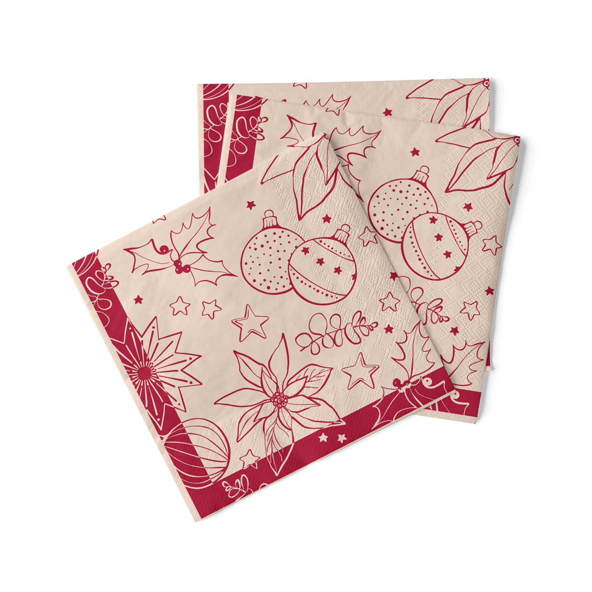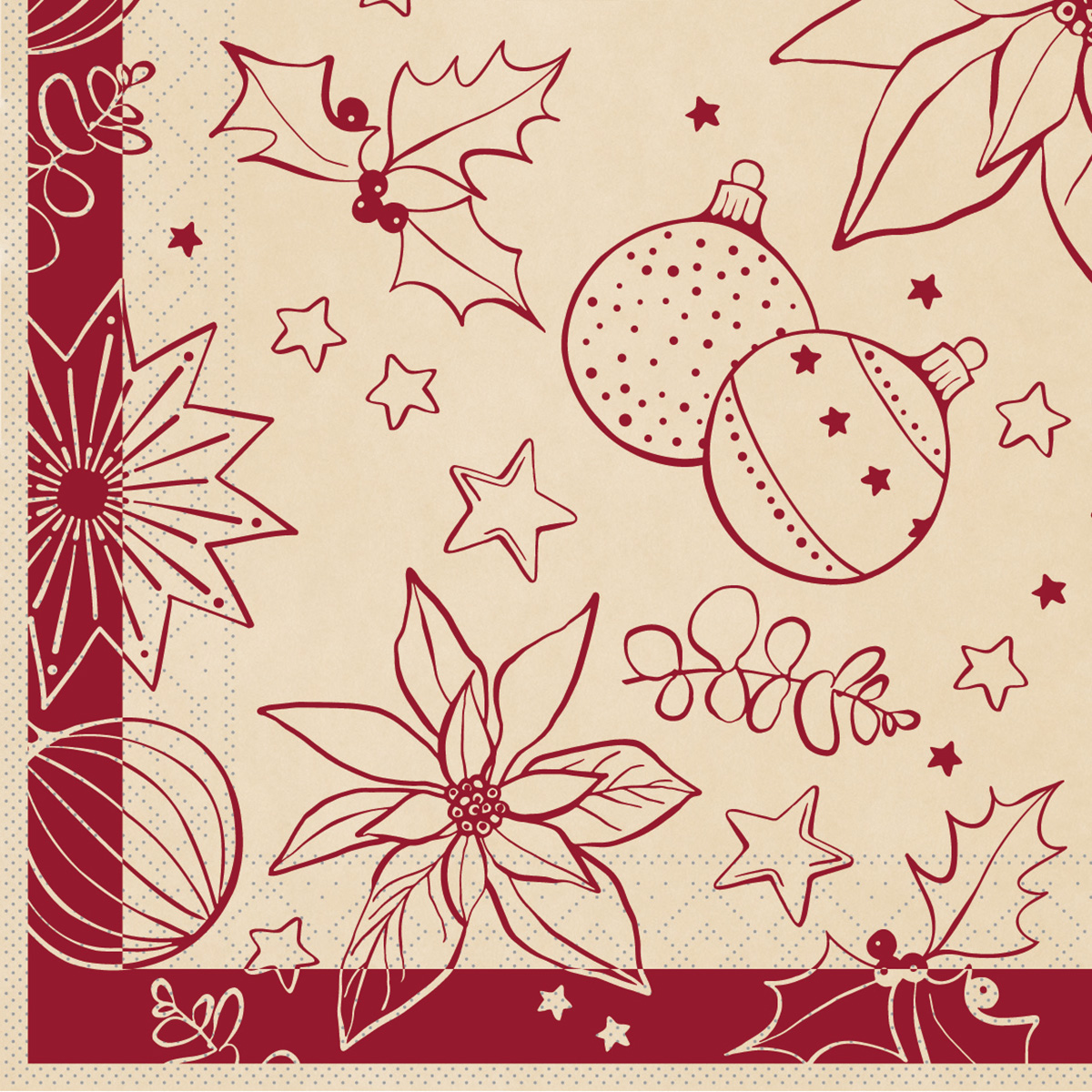 Mit 100 Servietten pro Packung sind Sie bestens ausgestattet, um größere Weihnachts- oder Firmenfeiern dekorativ zu gestalten. Die großzügige Größe von 40 x 40 cm ermöglicht kreatives Falten, Einsatz von Serviettenringen oder individuelle Tischdekorationen. Die Kombination aus Eleganz, Funktionalität und Nachhaltigkeit macht diese Servietten zu einem Highlight auf jedem festlichen Tisch.