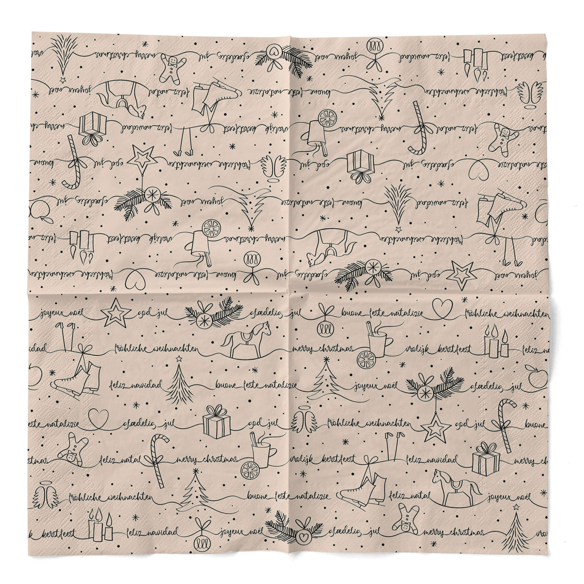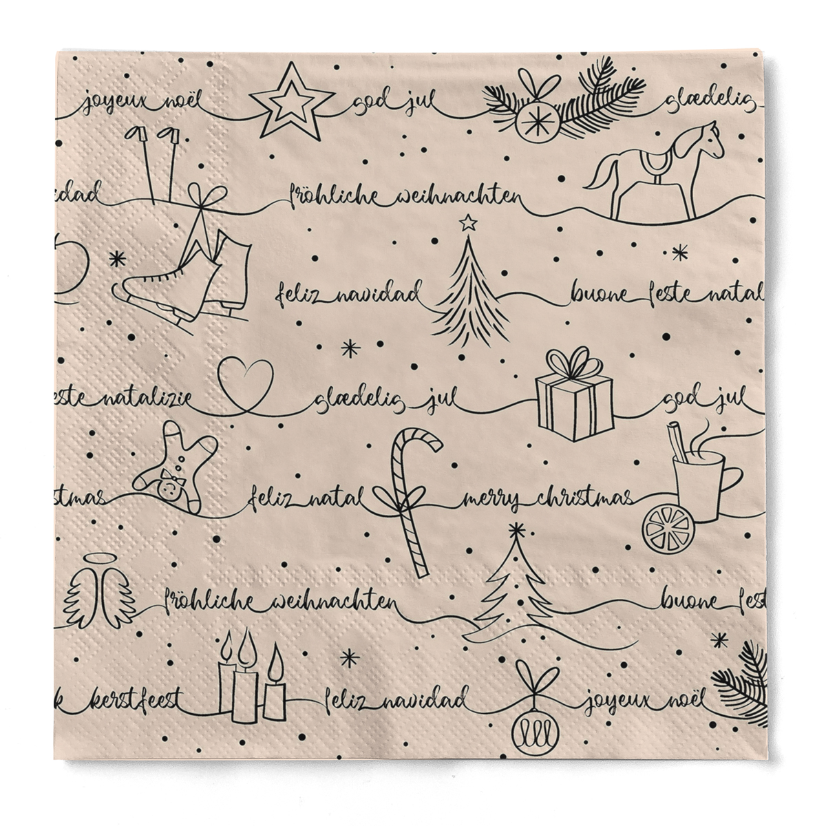 Tissue Serviette Isabell - Season´s Greetings - in Recycled Tissue, 24 x 24 cm, 150 Stück - Mank