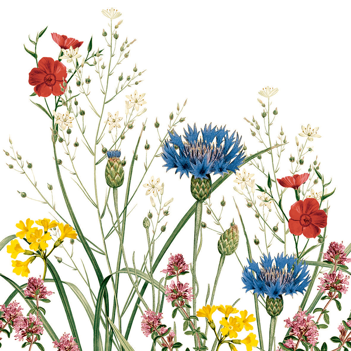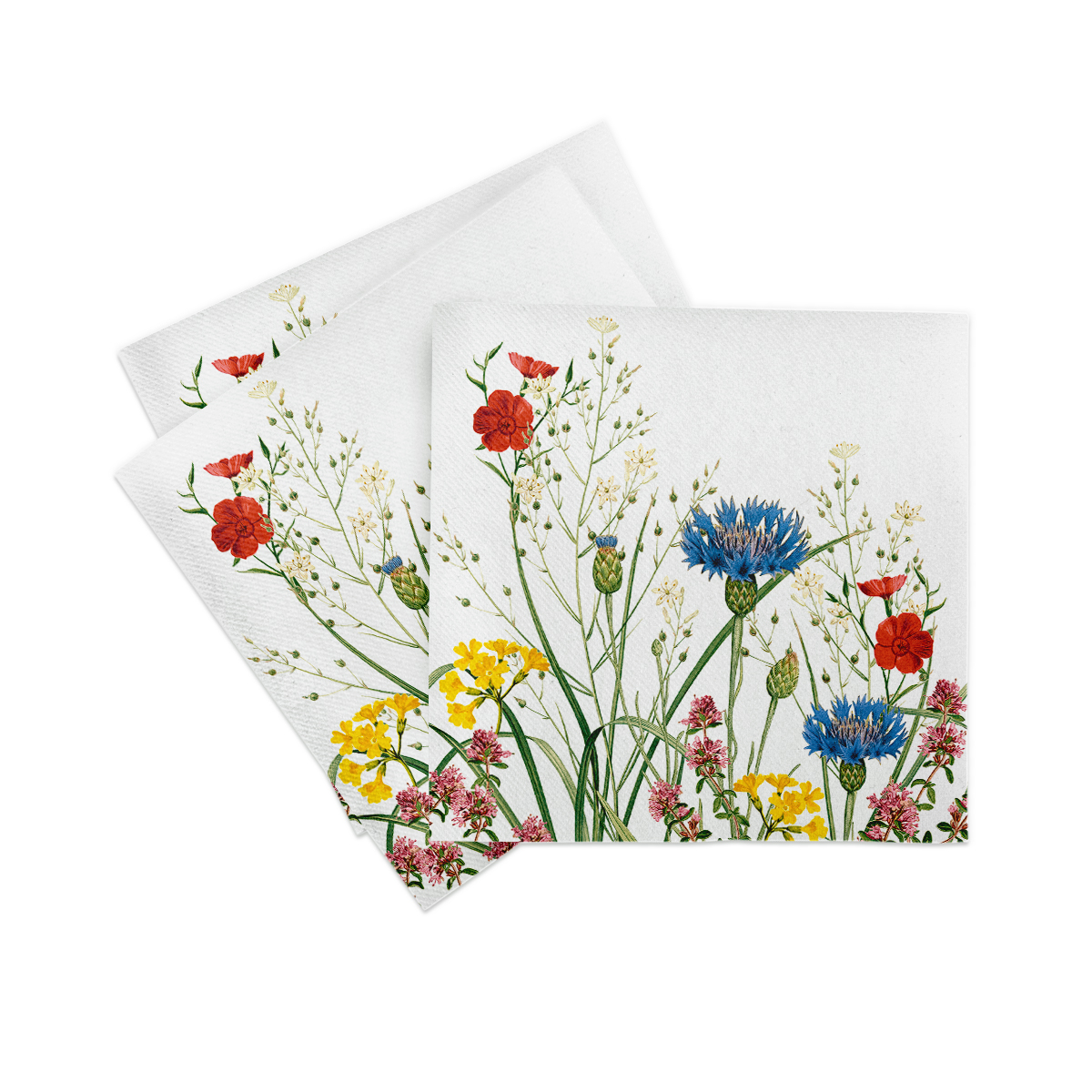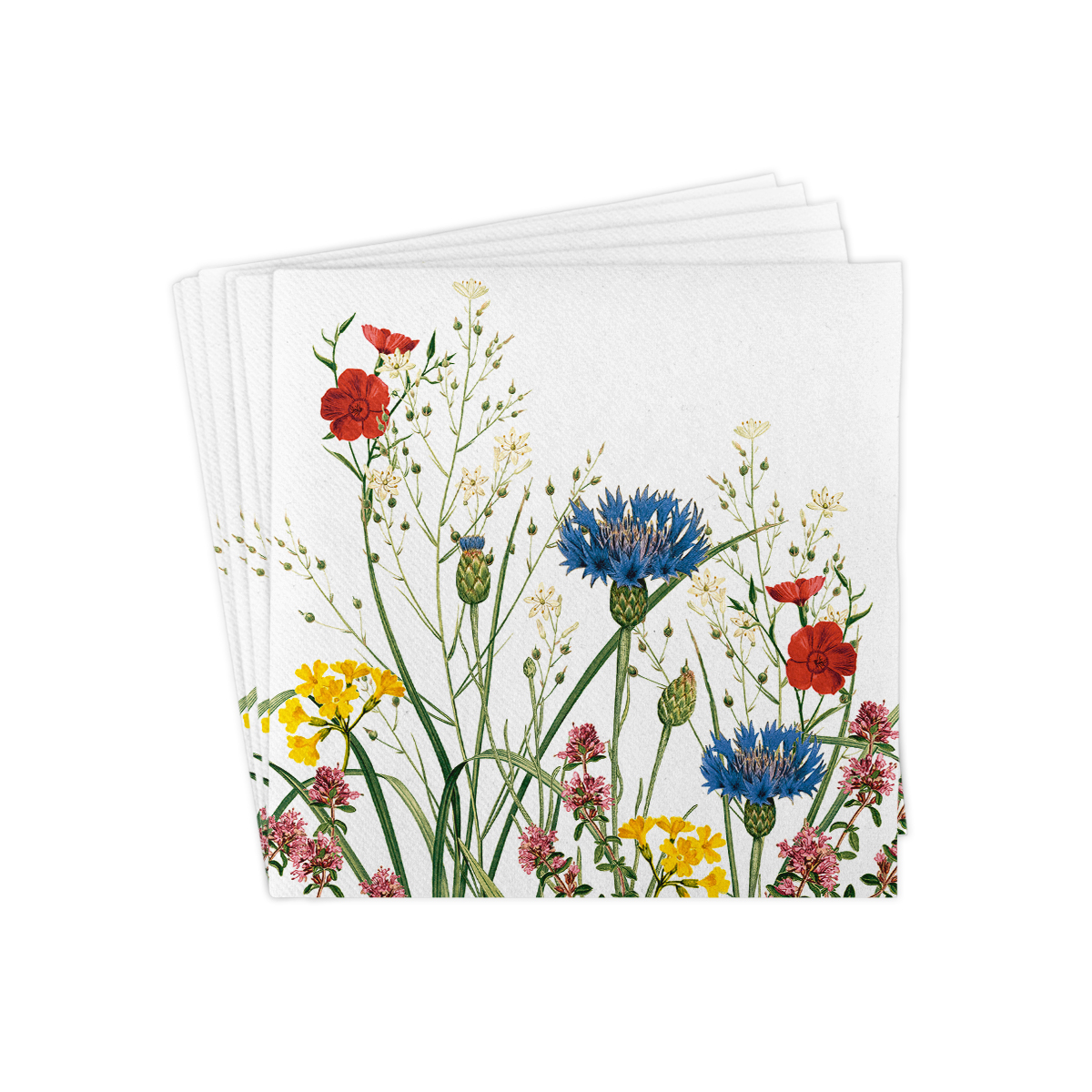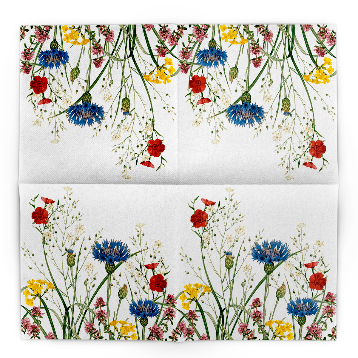 Diese Airlaid Frühlingsserviette mit Blumenmotiv verbindet Design, Qualität und Funktionalität und ist die ideale Wahl für alle, die im Online-Shop nach hochwertigen Servietten mit Blumenwiese für Frühling und Sommer suchen.
