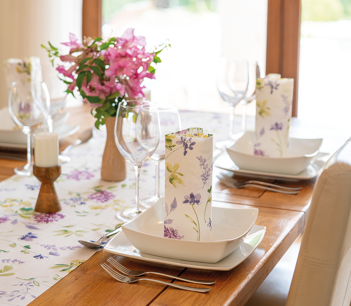 Dieser Airlaid Tischläufer mit Blumenmotiv verbindet Design, Qualität und Funktionalität und ist die perfekte Wahl für alle, die im Online-Shop nach einem hochwertigen Tischläufer für Frühling und Sommer suchen.