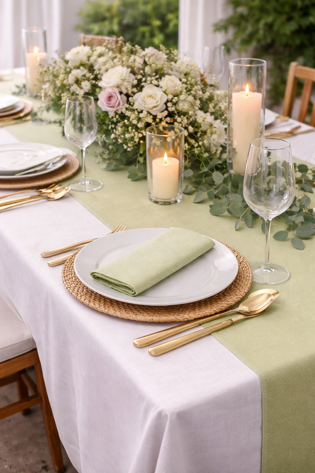 Der Mank Tischläufer Tonja in Salbei ist hervorragend geeignet für Hochzeiten, Gartenpartys, Frühlingsfeste, Sommerfeiern sowie für Restaurants, Hotels und Events. Durch seine dezente Farbgebung harmoniert er besonders gut mit Holz, Naturmaterialien, Weiß und hellen Geschirrserien.