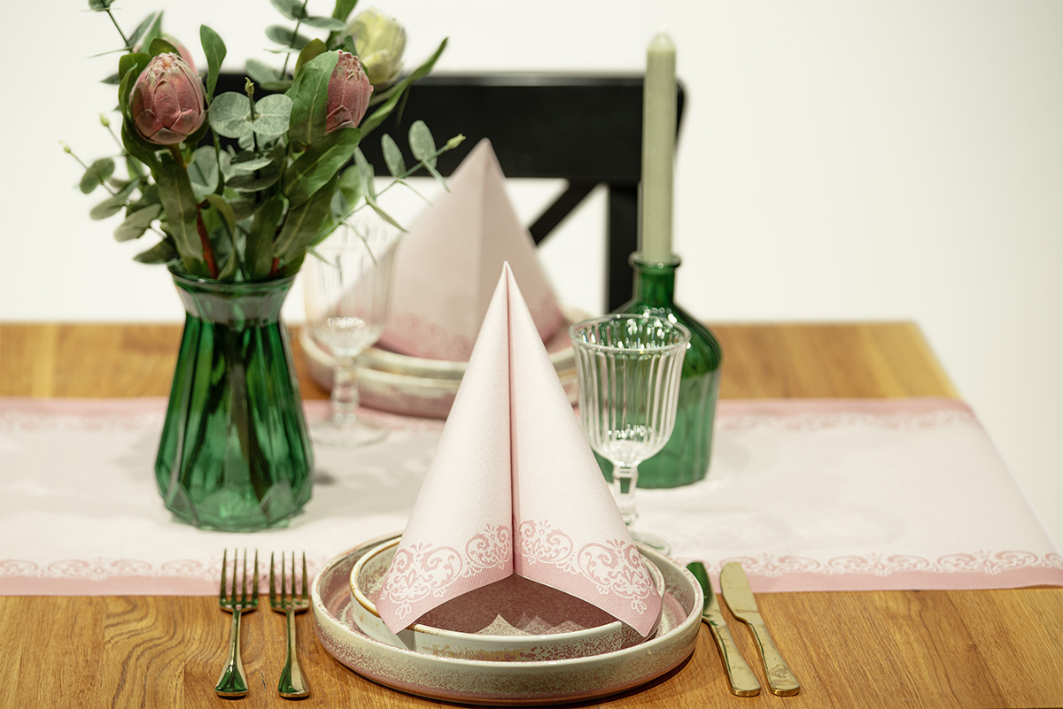 Der Airlaid Tischläufer Janina in Rosé (40 cm x 24 m) von Mank ist die ideale Wahl, wenn du eine elegante Tischdekoration mit stoffähnlicher Optik suchst, aber die Vorteile einer praktischen Einweg-Lösung nutzen möchtest. Das hochwertige Airlaid-Material fühlt sich angenehm weich an, wirkt wie Stoff, ist dabei reißfest, formstabil und schützt die Tischoberfläche zuverlässig vor Krümeln und kleinen Flecken. Mit der Breite von 40 cm eignet sich der Läufer perfekt als dekorativer Mittelstreifen auf Esstisch, Buffet oder Event-Tafel und lässt sich individuell auf die gewünschte Länge zuschneiden.