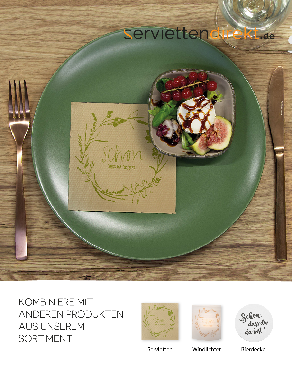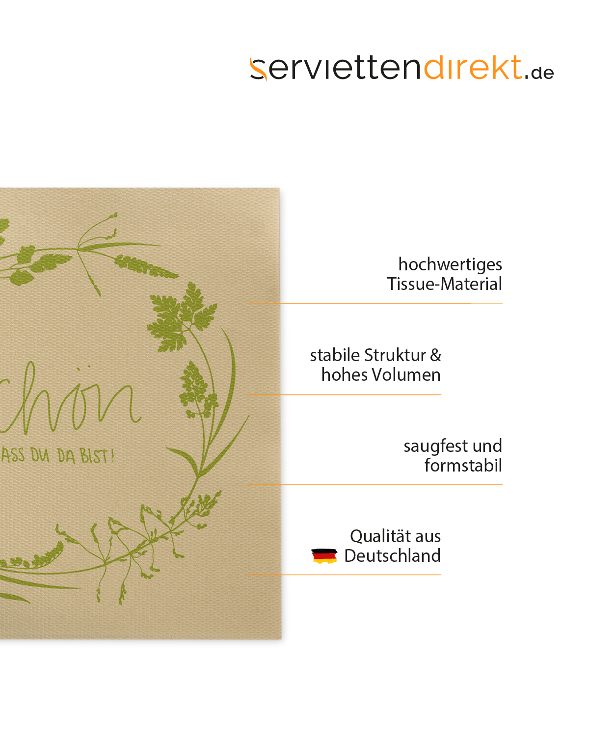 Tissue Serviette - Schön, dass du da bist! - in Oliv, 24 x 24 cm, 150 Stück - Mank