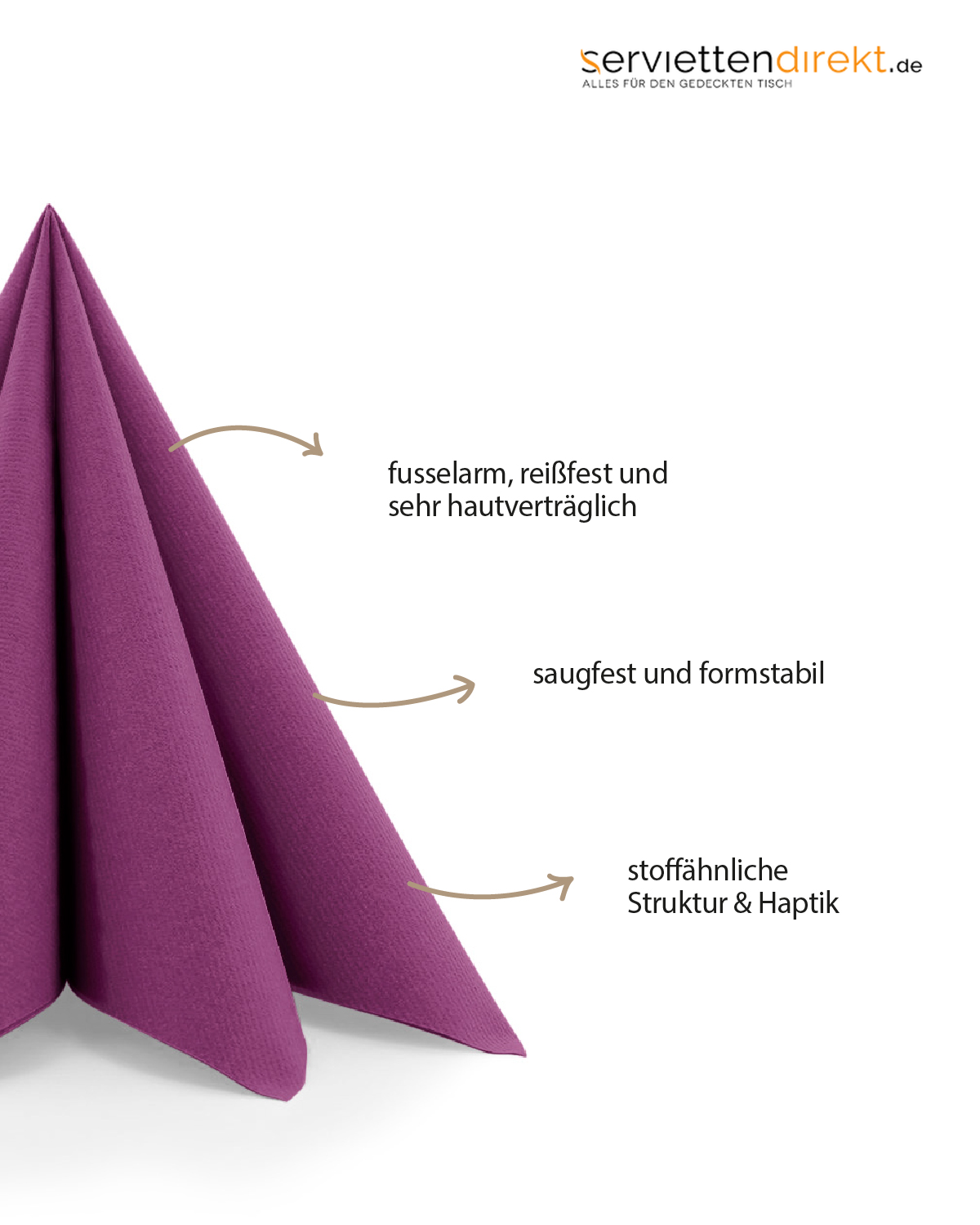 Die Produkte der Farbe AMETHYST aus unserem unifarbigen Sortiment sind in einem Farbton gehalten, der Raffinesse und Eleganz vermittelt. Mit diesen Produkten lassen sich edel wirkende Tischgestaltungen realisieren, die sich auch gut mit weiteren Designs aus unserem Sortiment kombinieren lassen. Lassen Sie sich von den Kombinationsmöglichkeiten inspirieren! Mit dieser Serviette der Farbe AMETHYST aus unserem unifarbigen Sortiment, lassen sich individuelle Dekorationen erstellen. Durch ihre bewährte Linclass-Airlaid Qualität, die ein stoffähnliches Griffgefühl erzeugt, lässt sie sich in beinahe jede Form bringen und avanciert zum Star Ihrer Tischgestaltung.