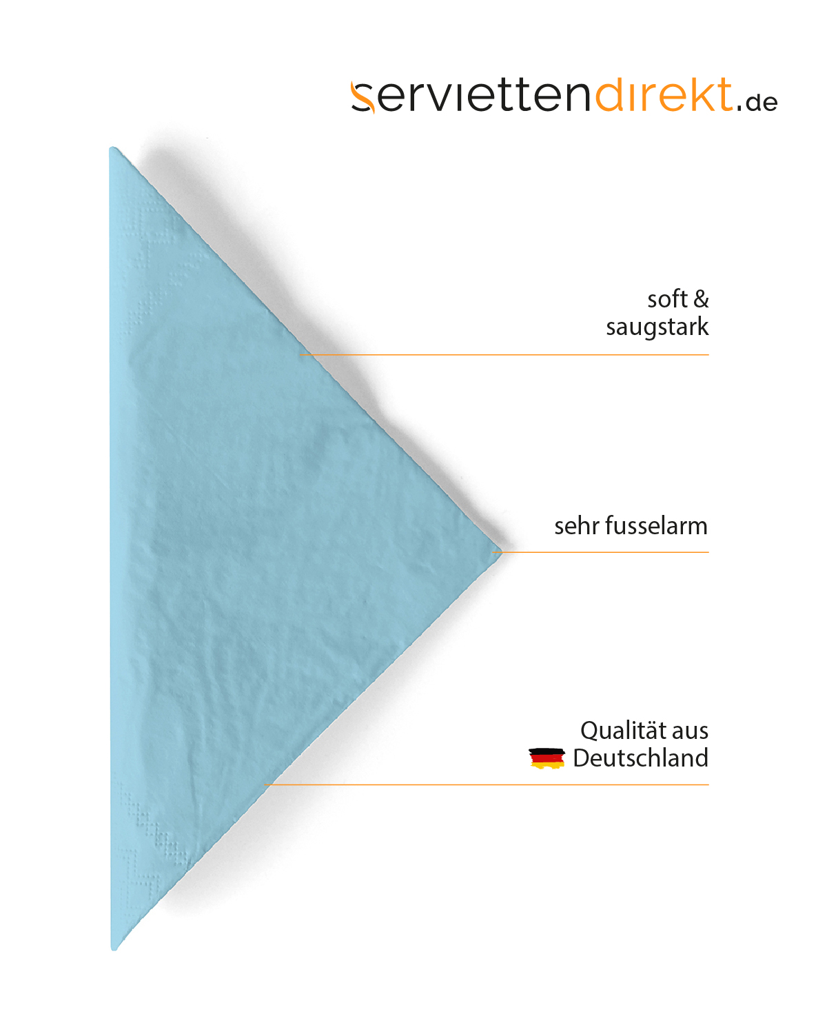 Der frische, helle Farbton unserer Produkte mit der Farbe HELLBLAU zeigt sich als flexibler Begeleiter -ob zur Babyparty, Taufe oder als frühlingshafte Dekoration - Unsere Tischprodukte der Farbe HELLBLAU sind solo oder in Kombination mit weiteren Produkten unseres Sortiments ein Hingucker! Unsere Servietten aus softem Tissue sind Allrounder für nahezu jede Service-Situation. Ob im Aussenbereich, beim FrühStücks-Service oder für den Nachmittagskaffee , Tissue Servietten punkten als Allround-Talente mit Stil!