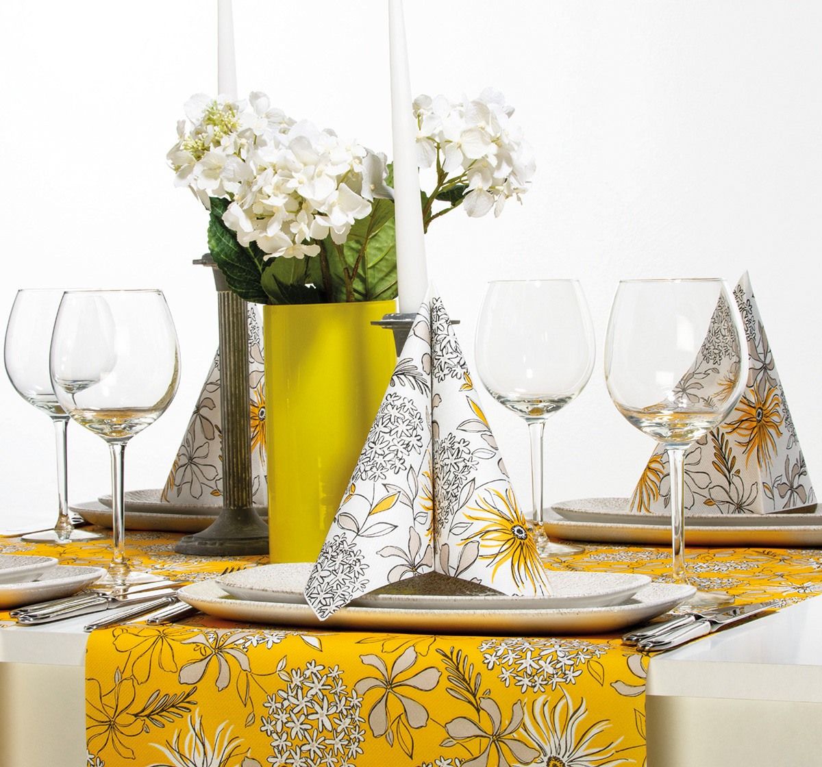 Airlaid Tischdecke Hilde in Gelb-Schwarz, 80 x 80 cm, 20 Stück - Mank