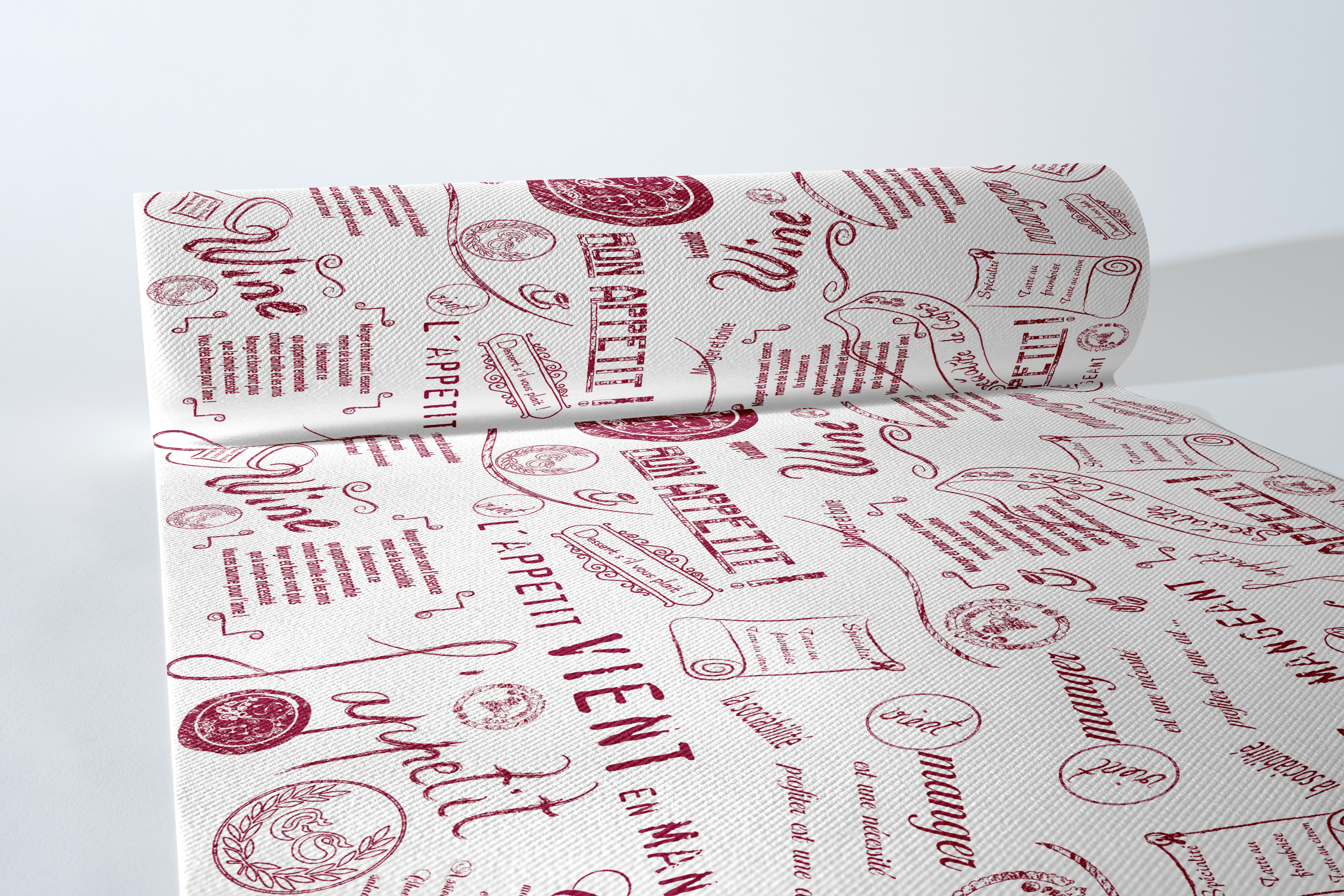 Mit dem Design SCRIPT fühlen Sie sich in eine französische Brasserie versetzt. Kombinieren Sie das moderne Design untereinander oder mit einem unserer einfarbigen Produkte! Moderne Table Top Designs sind mit unseren Tischläufer Rollen im Handumdrehen verwirklicht, denn das samtweiche Material und die textile Optik sorgen für stilvolle Akzente. Die Tischläufer auf der Rolle besitzen alle 120 Zentimeter eine praktische Perforation und lassen sich so auch ohne Schere sauber kürzen.